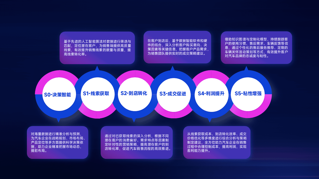 通过拓宽潜在客户来源、、、优化线索分配并提高到店转化率,,,以增强销售效率。。同时,,,,利用线索数据不断优化分析模型,,,有效提升转化率,,,扩大营销影响力。。